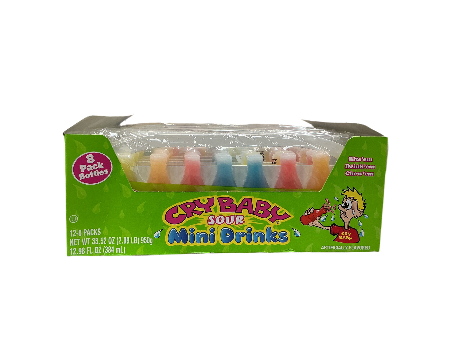 Satisfy your sour cravings with Crybaby sour mini drinks 8pack. Each pack contains 8 deliciously tangy drinks that are sure to make your taste buds tingle. Perfect for on-the-go snacking or sharing with friends, these mini drinks are a must-have for any sour lover.