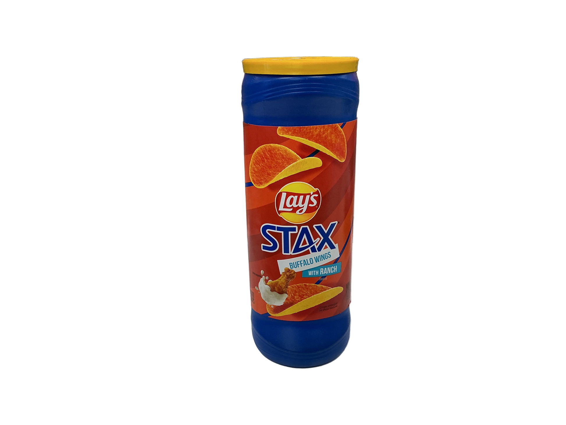 Explosive flavor awaits with Lays Stax Buffalo Wings with Ranch. Satisfy your craving for buffalo wings with the crunch of Lays Stax and the tangy coolness of ranch. With 100% real potatoes, these chips pack a punch of flavor that will leave you wanting more.