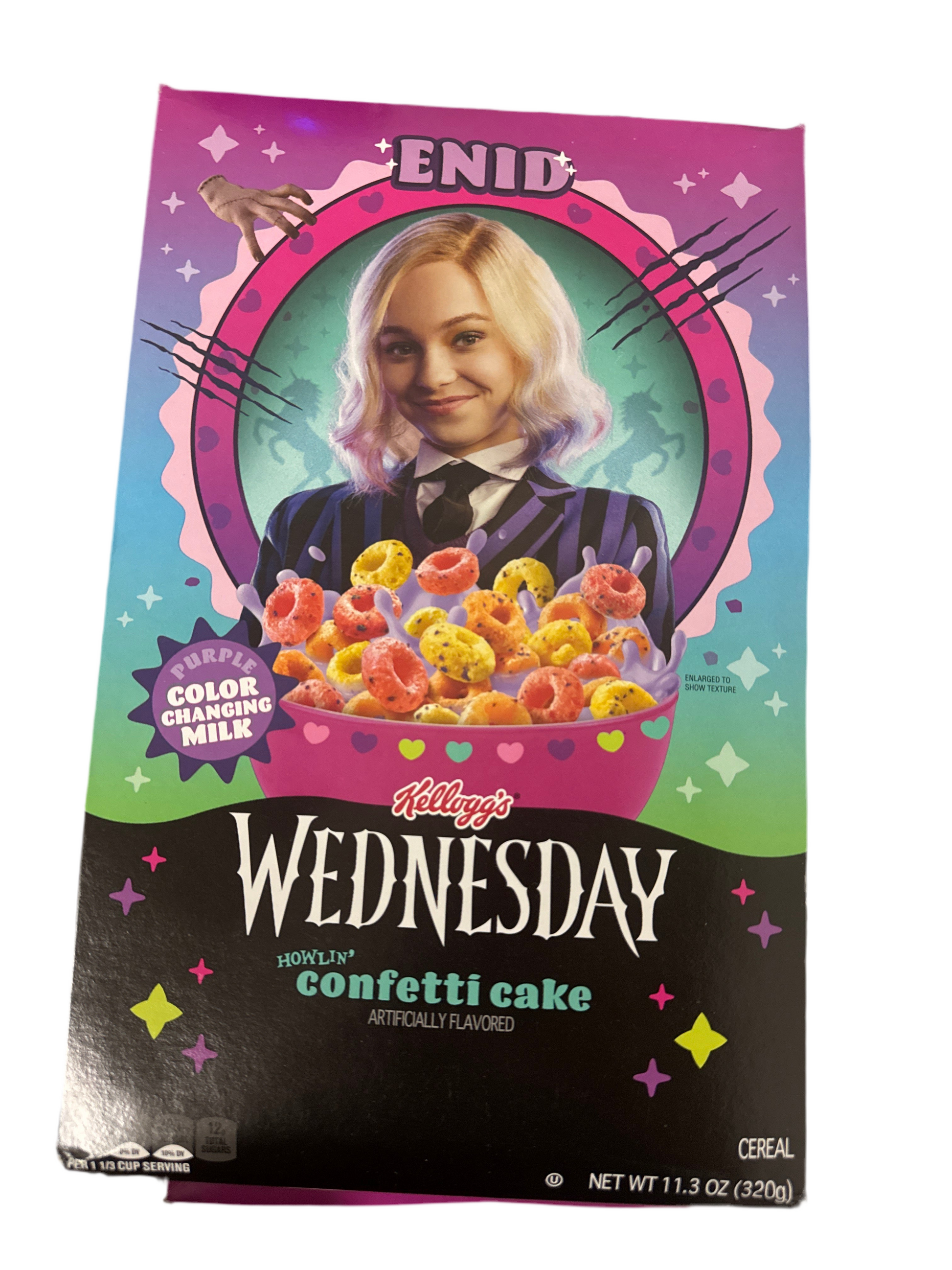 Indulge in the perfect combination of sweet and crunchy with our Wednesday Confetti Cake cereal. Made with real confetti cake pieces, every bite is a delightful explosion of flavor. Satisfy your cravings in a guilt-free way, with this delicious and unique cereal.